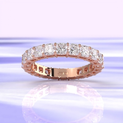 Sparkling shared prong cushion cut lab grown diamond women's eternity wedding band handmade in high polished 14k Rose Gold IGI Certified, it will look perfect any outfit. Showcases carat cushion diamond delicately secured with shared prong. Also available in 14k & 18k white gold, yellow gold, rose gold and platinum 950. If you don't find your desired jewelry, please don't hesitate to contact our designer to make your custom jewelry design. (3.4Ct. tw.)