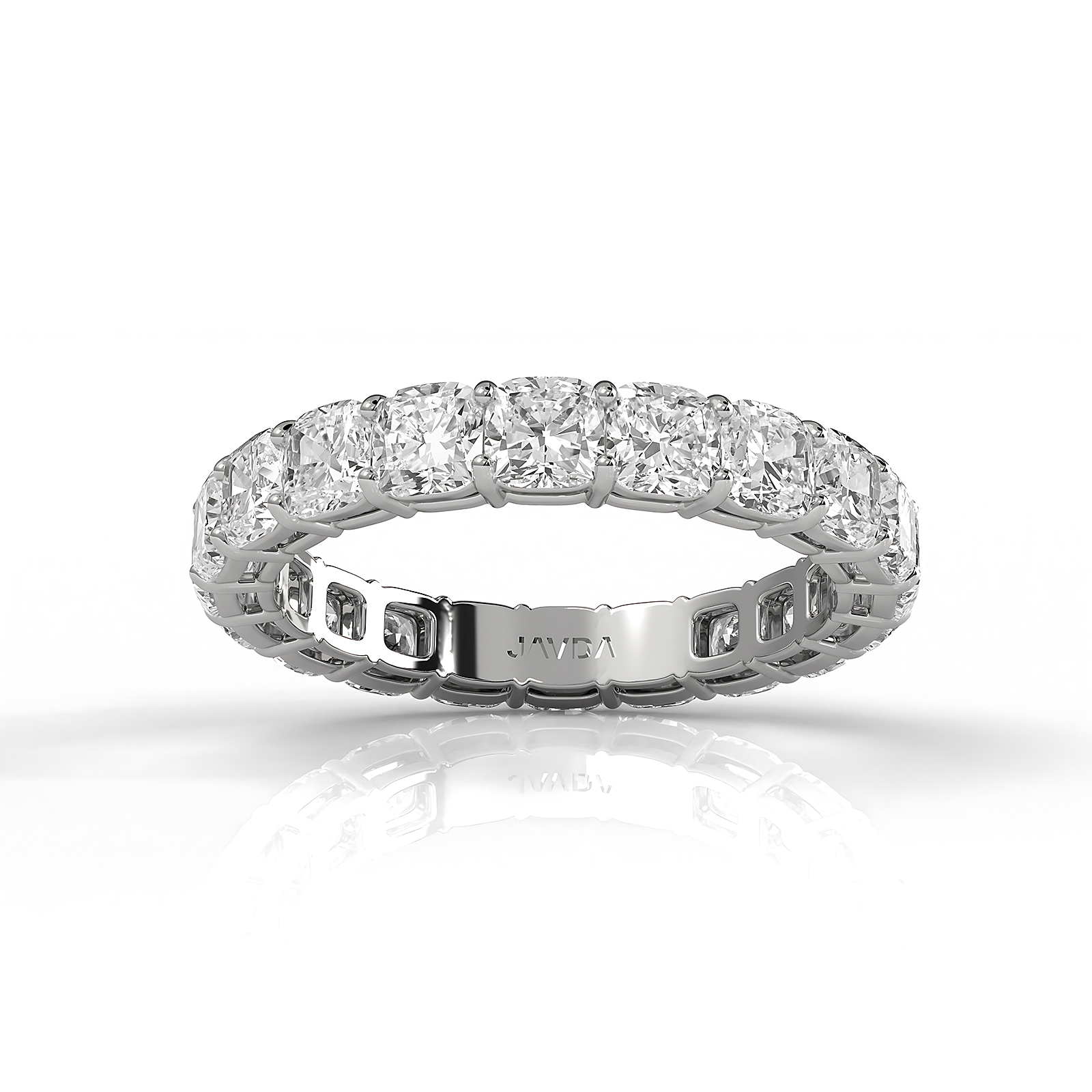 This breathtaking women's eternity cushion cut lab grown diamond wedding band ring crafted in high quality 18k Gold White. Features carat cushion diamond secured with shared prong setting Certified by IGI. Also available in 14k & 18k white gold, yellow gold, rose gold and platinum 950. If you don't find your desired jewelry, please don't hesitate to contact our designer to make your custom jewelry design. (3.8Ct. tw.)