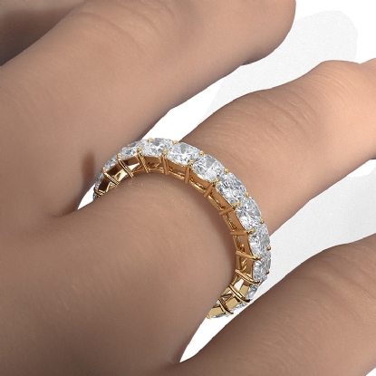 This stunning women's shared prong cushion shape lab grown diamond women's eternity wedding band crafted in high quality 14k Gold Yellow. Showcases carat cushion diamond beautifully set in a shared prong setting. This anniversary ring is ideal choice for party wear, also available in 14k & 18k white gold, yellow gold, rose gold and platinum 950. If you don't find your desired jewelry, please don't hesitate to contact our designer to make your custom jewelry design. (5Ct. tw.)