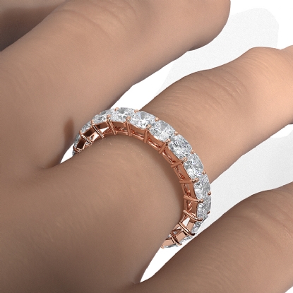 This stunning women's shared prong cushion shape lab grown diamond women's eternity wedding band crafted in high quality 14k Rose Gold. Showcases carat cushion diamond beautifully set in a shared prong setting. This anniversary ring is ideal choice for party wear, also available in 14k & 18k white gold, yellow gold, rose gold and platinum 950. If you don't find your desired jewelry, please don't hesitate to contact our designer to make your custom jewelry design. (5Ct. tw.)