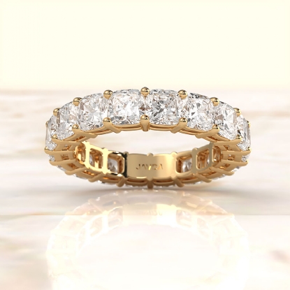 Elegance cushion cut lab grown diamond women's eternity anniversary ring crafted in 18k Gold Yellow. This gorgeous wedding band showcases carat cushion shape diamond secured with shared prong setting certified by IGI enhances the beauty of ring. Also available in 14k & 18k white gold, yellow gold, rose gold and platinum 950. If you don't find your desired jewelry, please don't hesitate to contact our designer to make your custom jewelry design. (6.5Ct. tw.)