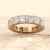 A timeless women's eternity cushion shape lab grown diamond women's wedding band crafted in 18k Gold Yellow. Showcases carat cushion diamond in a shared prong setting. Mix and match with other stackable ring, also available in 14k & 18k white gold, yellow gold, rose gold and platinum 950. If you don't find your desired jewelry, please don't hesitate to contact our designer to make your custom jewelry design. (9.6Ct. tw.)