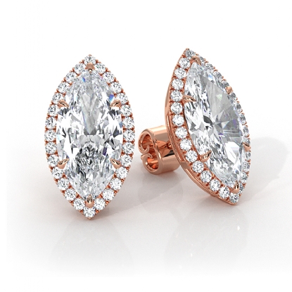 Halo Marquise Lab grown Diamond Claw Prong Women Earring IGI 14k Rose Gold (4.33Ct. tw.)