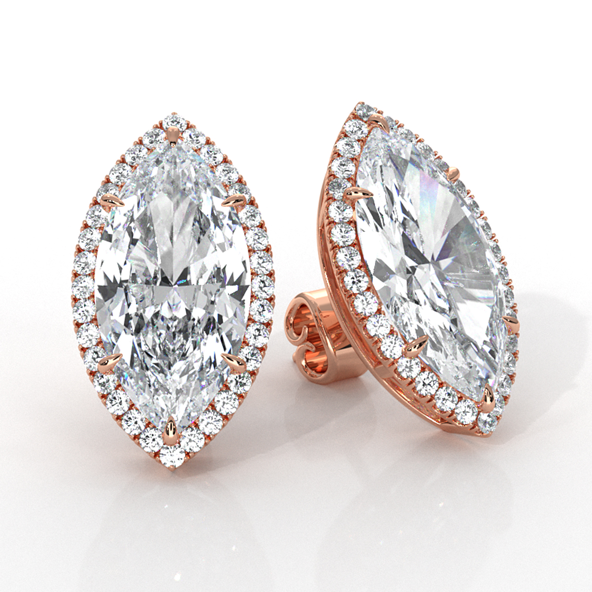 Marquise Lab grown Diamond Claw Prong Women Halo Earring IGI 18k Rose Gold (6.38Ct. tw.)