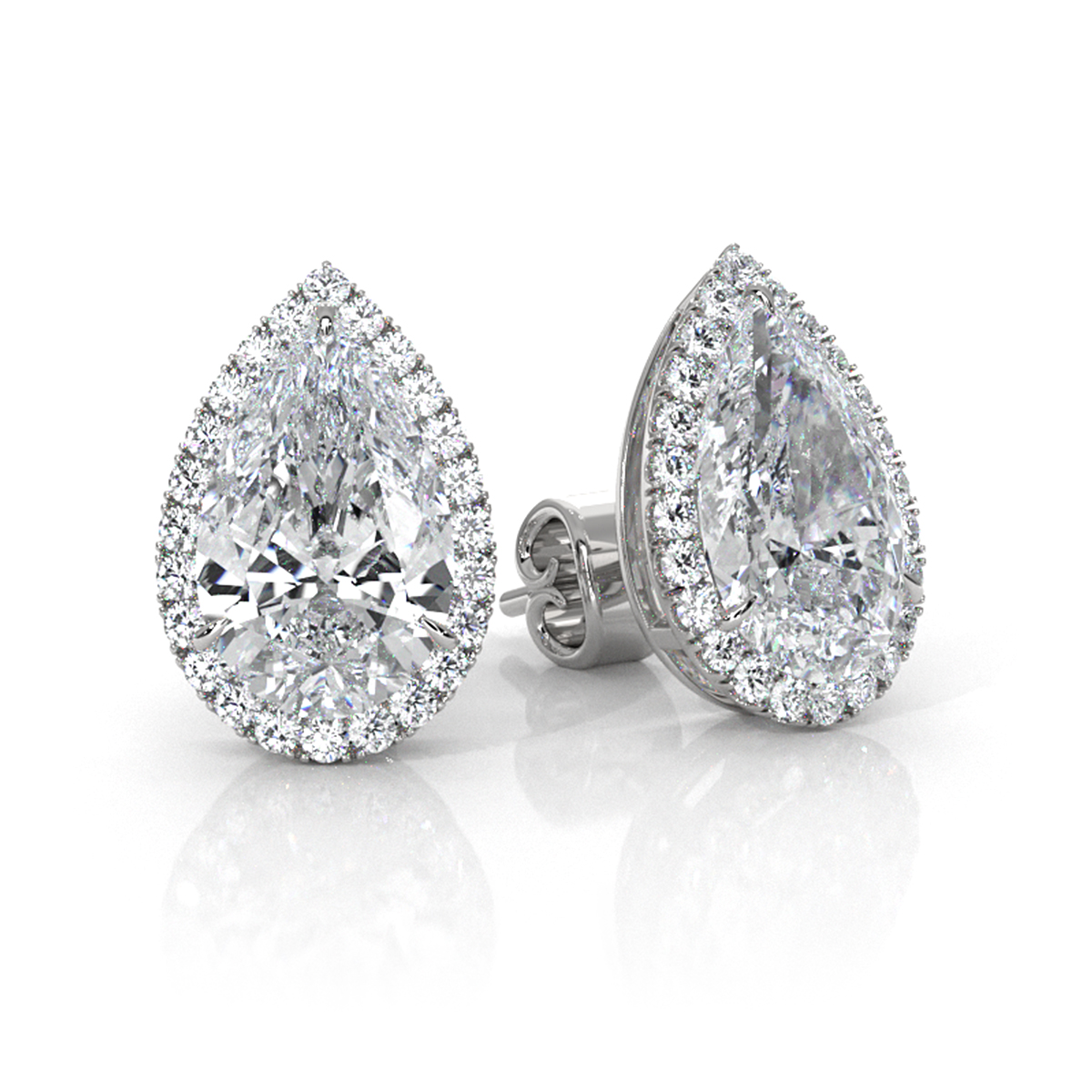Women's Halo Pear Lab grown Diamond Prong Set Earring IGI 18k W Gold (3.31Ct. tw.)