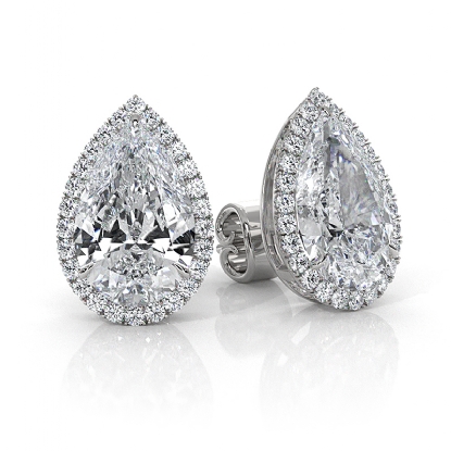 Stunning pair of halo pear shape lab grown diamond women's earrings, meticulously crafted in gleaming 18k Gold White and IGI certified. These dazzling earrings will elevate any look. Highlighting a carat total weight center diamond, surrounded by a round halo of smaller diamonds, all securely set with claw prongs. Perfect for a gift! Also available in 14k & 18k white gold, yellow gold, rose gold and platinum 950. If you don't find your desired jewelry, please don't hesitate to contact our designer to make your custom jewelry designs. (5.34Ct. tw.)