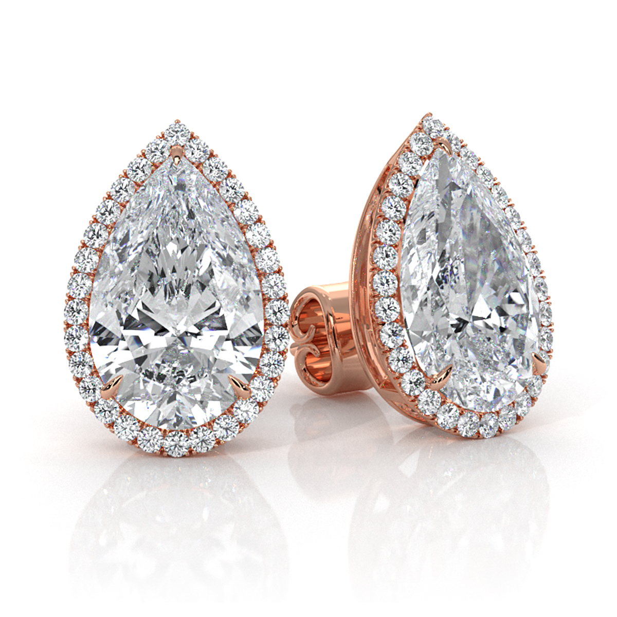 Halo Pear Lab grown Diamond Claw Prong Womens Earring IGI 18k Rose Gold (6.36Ct. tw.)