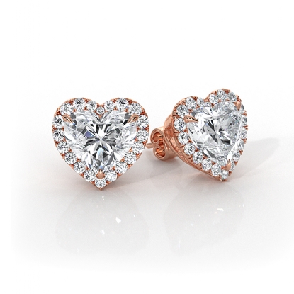 Heart Lab grown Diamond Claw Prong Women Halo Earring IGI 18k Rose Gold (3.3Ct. tw.)