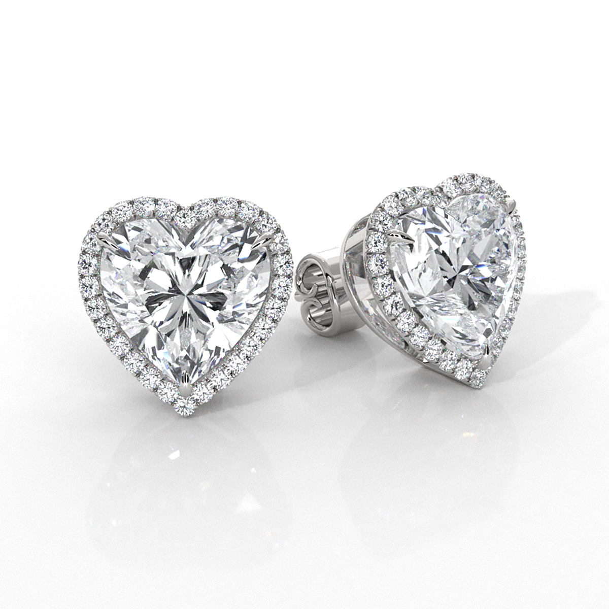Elegant pair of halo heart lab grown diamond women's earrings, meticulously handcrafted in luminous 18k Gold White and IGI certified. These stunning earrings will elevate any attire. Showcasing carat heart diamond secured with claw prong, encircled by a dazzling halo of smaller diamonds. Earrings that Capture Your Radiance. Also available in 14k & 18k white gold, yellow gold, rose gold and platinum 950. If you don't find your desired jewelry, please don't hesitate to contact our designer to make your custom jewelry designs. (6.45Ct. tw.)