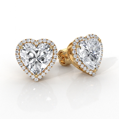 Elegant pair of halo heart lab grown diamond women's earrings, meticulously handcrafted in luminous 18k Gold Yellow and IGI certified. These stunning earrings will elevate any attire. Showcasing carat heart diamond secured with claw prong, encircled by a dazzling halo of smaller diamonds. Earrings that Capture Your Radiance. Also available in 14k & 18k white gold, yellow gold, rose gold and platinum 950. If you don't find your desired jewelry, please don't hesitate to contact our designer to make your custom jewelry designs. (6.45Ct. tw.)
