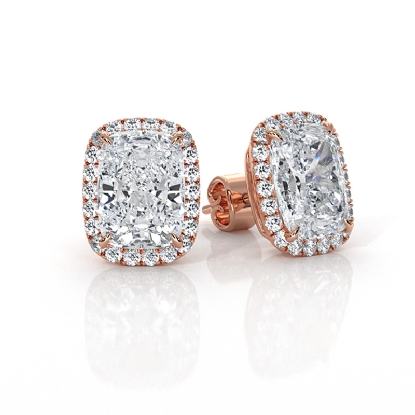 Luxurious pair of halo cushion lab grown diamond women's earrings, meticulously fashioned in luminous 18k Rose Gold and IGI certified. These enchanting earrings will elevate any outfit. Featuring a carat total weight cushion diamond, encircled by a dazzling halo of smaller diamonds, all securely set with claw prongs. Also available in 14k & 18k white gold, yellow gold, rose gold and platinum 950. If you don't find your desired jewelry, please don't hesitate to contact our designer to make your custom jewelry designs. (3.25Ct. tw.)