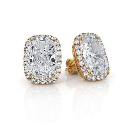 Elegant halo style women's earrings featuring exquisite lab-grown cushion diamonds, meticulously crafted in lustrous 18k Gold Yellow and certified by IGI. These mesmerizing earrings are designed to elevate any attire, showcasing carats cushion diamond surrounded by a dazzling halo of smaller diamonds, securely held in place by claw prongs. Also available in 14k & 18k white gold, yellow gold, rose gold and platinum 950. If you don't find your desired jewelry, please don't hesitate to contact our designer to make your custom jewelry designs. (4.29Ct. tw.)