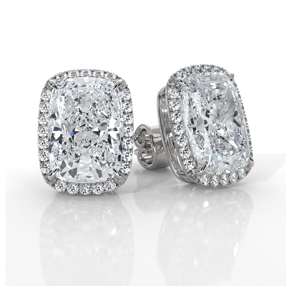 Gorgeous halo style women's earrings adorned with stunning lab grown cushion diamonds, expertly fashioned in gleaming 18k Gold White and certified by IGI. Its showcases cushion diamond secured with claw prong setting. Perfect for festival or special events. Also available in 14k & 18k white gold, yellow gold, rose gold and platinum 950. If you don't find your desired jewelry, please don't hesitate to contact our designer to make your custom jewelry designs. (6.34Ct. tw.)