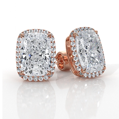 Gorgeous halo style women's earrings adorned with stunning lab grown cushion diamonds, expertly fashioned in gleaming 18k Rose Gold and certified by IGI. Its showcases cushion diamond secured with claw prong setting. Perfect for festival or special events. Also available in 14k & 18k white gold, yellow gold, rose gold and platinum 950. If you don't find your desired jewelry, please don't hesitate to contact our designer to make your custom jewelry designs. (6.34Ct. tw.)