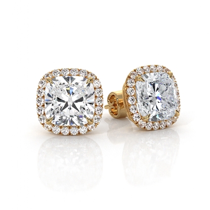 Sparkle with Elegance with this sophisticated halo style women's earrings embellished with splendid lab grown cushion diamonds, expertly fashioned in 18k Gold Yellow and certified by IGI. These mesmerizing earrings are crafted to enhance any ensemble, featuring a carat cushion diamond secured with claw prong setting. Also available in 14k & 18k white gold, yellow gold, rose gold and platinum 950. If you don't find your desired jewelry, please don't hesitate to contact our designer to make your custom jewelry designs. (3.26Ct. tw.)