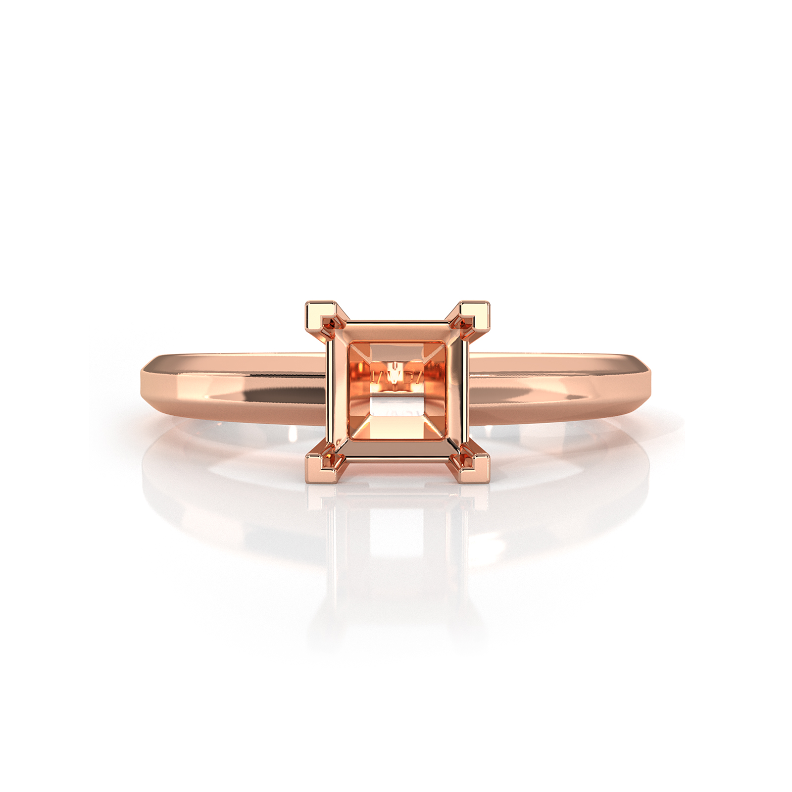 Solitaire Diamond Engagement Ring 14k Rose Gold Princess Semi Mount
