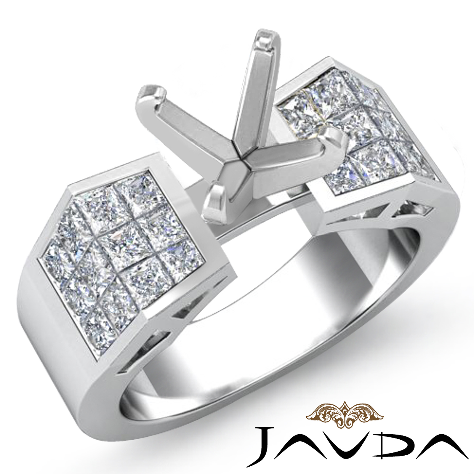 Princess Diamond Engagement Women Ring Invisible Semi Mount 14k W Gold (1Ct. tw.)