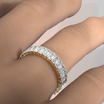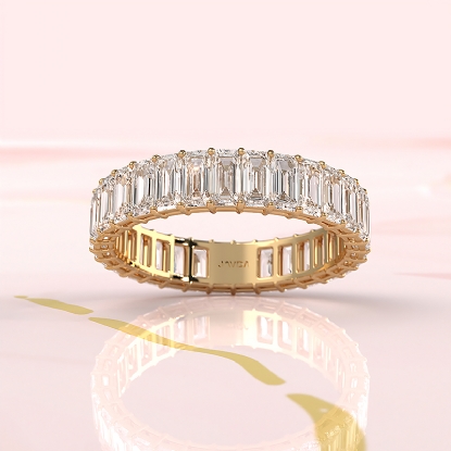 A unique emerald cut lab grown diamond wedding band is handcrafted in 14k Gold Yellow. This lovely women's eternity anniversary ring, showcases carat emerald diamonds in a shared prong setting IGI Certified, also available in 14k & 18k white gold, yellow gold, rose gold and platinum 950. If you don't find your desired jewelry, please don't hesitate to contact our designer to make your custom jewelry design. (3.2Ct. tw.)