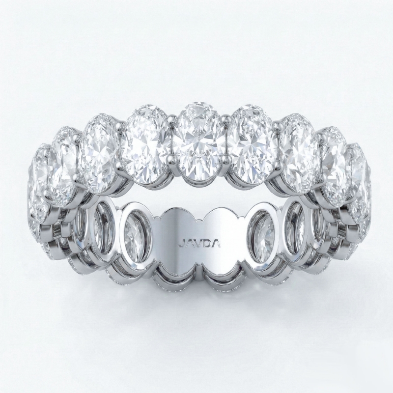 This beautifully designed shared prong oval cut diamond eternity anniversary ring is expertly handmade in premium 18k Gold White. Showcasing of stunning oval diamonds securely set in a shared prong setting, this IGI Certified wedding band exudes elegance and sophistication. Its timeless design makes it a perfect choice for celebrating love and milestones. Also available in 14k & 18k white gold, yellow gold, rose gold and platinum 950. If you don't find your desired jewelry, please don't hesitate to contact our designer to make your custom jewelry design. (5.05Ct. tw.)