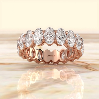 This beautifully designed shared prong oval cut diamond eternity anniversary ring is expertly handmade in premium 14k Rose Gold. Showcasing of stunning oval diamonds securely set in a shared prong setting, this IGI Certified wedding band exudes elegance and sophistication. Its timeless design makes it a perfect choice for celebrating love and milestones. Also available in 14k & 18k white gold, yellow gold, rose gold and platinum 950. If you don't find your desired jewelry, please don't hesitate to contact our designer to make your custom jewelry design. (5.05Ct. tw.)