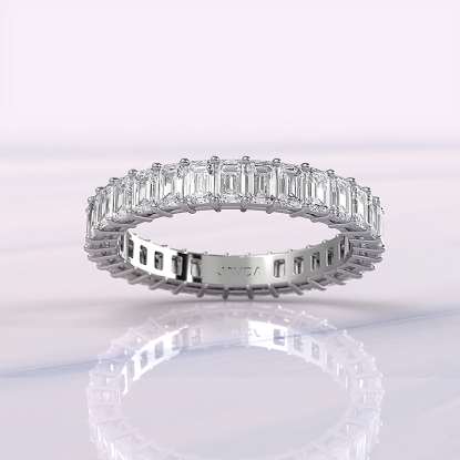 This breathtaking and timeless emerald cut lab grown diamond women's eternity wedding band is meticulously handcrafted in Platinum 950. The sophisticated diamond anniversary ring features of brilliant emerald diamonds set in a shared prong setting, IGI Certified for guaranteed quality. Also available in 14k & 18k white gold, yellow gold, rose gold and platinum 950. If you don't find your desired jewelry, please don't hesitate to contact our designer to make your custom jewelry design. (2.35Ct. tw.)
