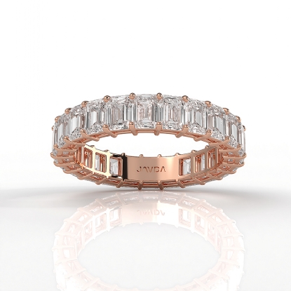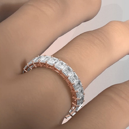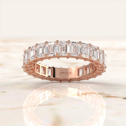 This stunning and timeless emerald cut lab grown diamond women's eternity wedding band is expertly handcrafted in 14k Rose Gold. The elegant diamond anniversary ring showcases of dazzling emerald diamonds, set in a shared prong setting, and is IGI Certified to ensure superior quality. Pair this wedding band with an engagement ring for added brilliance and sophistication. Also available in 14k & 18k white gold, yellow gold, rose gold and platinum 950. If you don't find your desired jewelry, please don't hesitate to contact our designer to make your custom jewelry design. (4Ct. tw.)