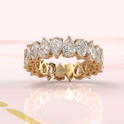 This elegant oval shaped lab grown diamond women's eternity wedding band, meticulously crafted in 14k Gold Yellow, exudes timeless beauty. The delicate piece showcases of oval diamonds set in a shared prong setting, IGI Certified for guaranteed quality. This wedding band represents the perfect symbol of your shared commitment on your special day. Also available in 14k & 18k white gold, yellow gold, rose gold and platinum 950. If you don't find your desired jewelry, please don't hesitate to contact our designer to make your custom jewelry design. (3.8Ct. tw.)