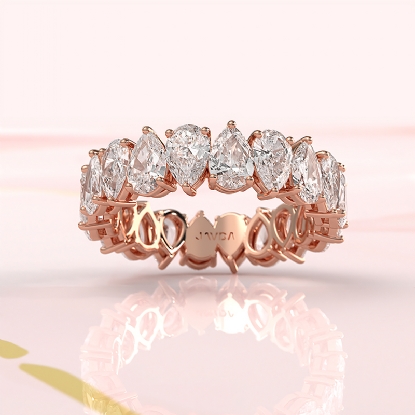 This elegant oval shaped lab grown diamond women's eternity wedding band, meticulously crafted in 14k Rose Gold, exudes timeless beauty. The delicate piece showcases of oval diamonds set in a shared prong setting, IGI Certified for guaranteed quality. This wedding band represents the perfect symbol of your shared commitment on your special day. Also available in 14k & 18k white gold, yellow gold, rose gold and platinum 950. If you don't find your desired jewelry, please don't hesitate to contact our designer to make your custom jewelry design. (3.8Ct. tw.)