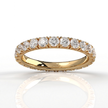 A breathtaking round cut lab grown diamond women's eternity anniversary wedding band is flawlessly crafted in 14k Gold Yellow It showcases of sparkling round diamonds set in a shared prong setting, with IGI Certification to ensure quality. This anniversary ring serves as the ideal expression of your mutual love on your unforgettable day. Also available with your choice of center diamond and metal in 14k & 18k white gold, yellow gold, rose gold, and platinum 950. If you can't find the perfect piece of jewelry, please don't hesitate to reach out to our designer to create a custom design just for you. (1.35Ct. tw.)