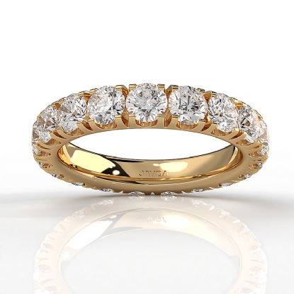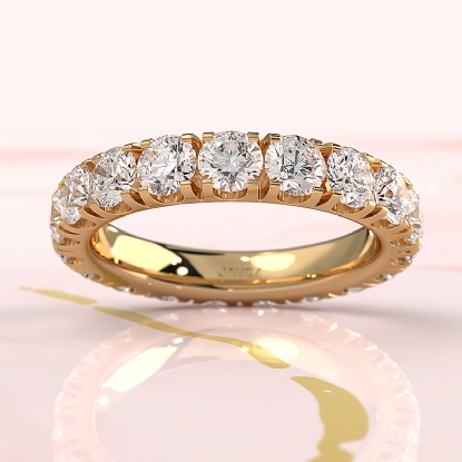 Celebrate the woman you cherish with this exquisite basket style round cut lab grown diamond women's eternity wedding band, handcrafted in 14k Gold Yellow. It features of dazzling round diamonds set in a french u cut pave setting, with IGI Certification for guaranteed quality. Also available in 14k & 18k white gold, yellow gold, rose gold and platinum 950. If you don't find your desired jewelry, please don't hesitate to contact our designer to make your custom jewelry design. (2.9Ct. tw.)