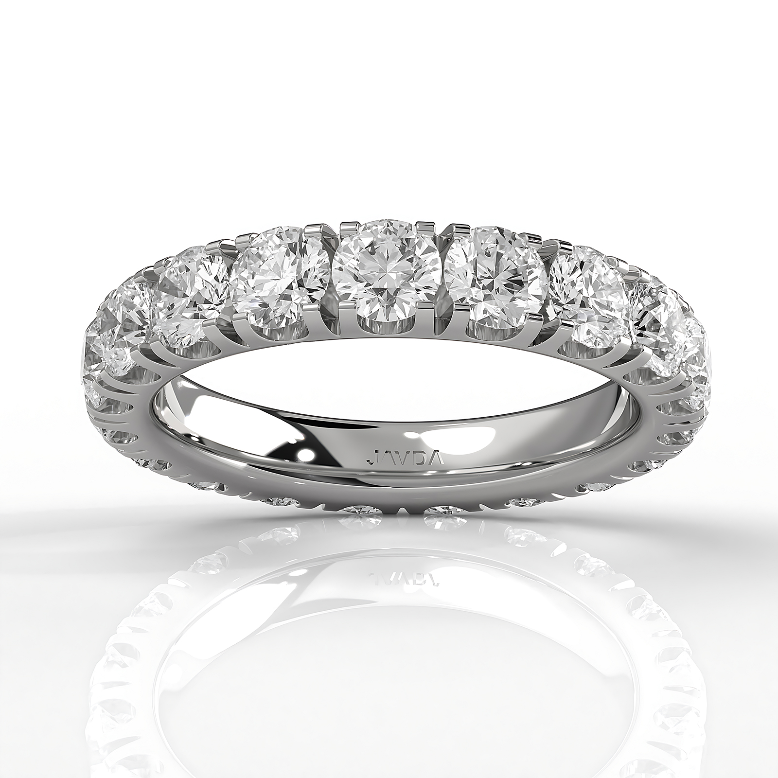 Celebrate the woman you cherish with this exquisite basket style round cut lab grown diamond women's eternity wedding band, handcrafted in 18k Gold White. It features of dazzling round diamonds set in a french u cut pave setting, with IGI Certification for guaranteed quality. Also available in 14k & 18k white gold, yellow gold, rose gold and platinum 950. If you don't find your desired jewelry, please don't hesitate to contact our designer to make your custom jewelry design. (2.9Ct. tw.)