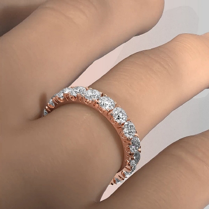 Celebrate the woman you cherish with this exquisite basket style round cut lab grown diamond women's eternity wedding band, handcrafted in 14k Rose Gold. It features of dazzling round diamonds set in a french u cut pave setting, with IGI Certification for guaranteed quality. Also available in 14k & 18k white gold, yellow gold, rose gold and platinum 950. If you don't find your desired jewelry, please don't hesitate to contact our designer to make your custom jewelry design. (2.9Ct. tw.)