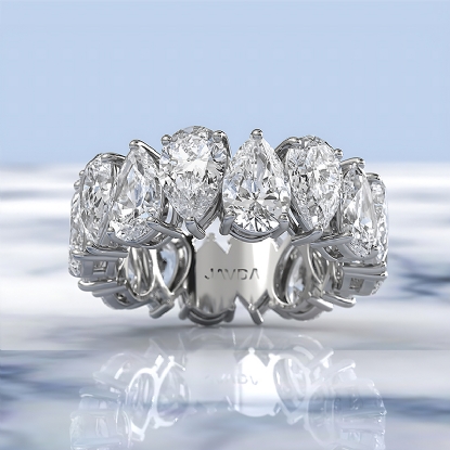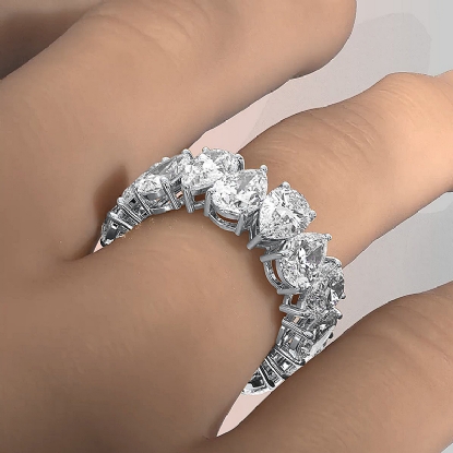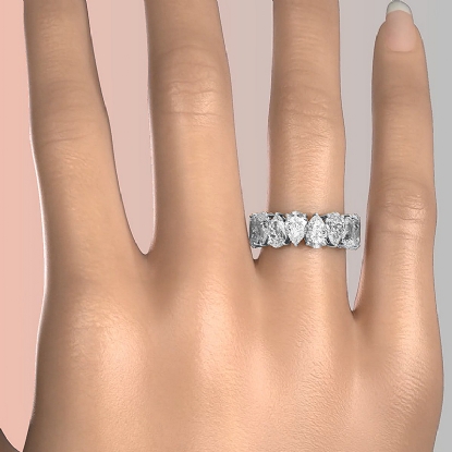 Women's Shared Prong Pear Lab Grown Diamond Wedding Band 18k W Gold (8Ct. tw.)