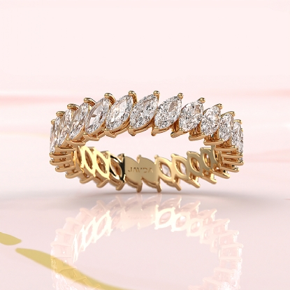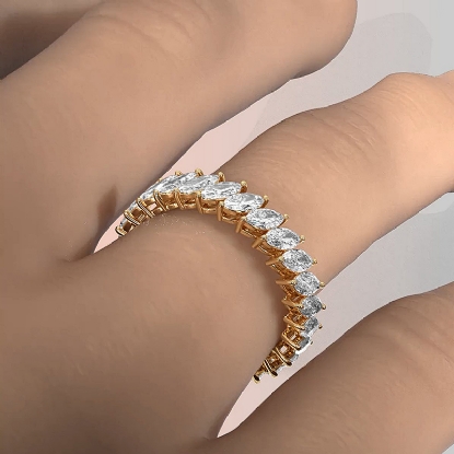 "Celebrate forever with a ring as unique as your love" with this marquise cut lab grown diamond women's eternity wedding band, elegantly crafted in 14k Gold Yellow. This shimmering anniversary ring showcases carat total weight marquise diamonds in a shared prong setting, IGI certified. Also available in 14k & 18k white gold, yellow gold, rose gold and platinum 950. If you don't find your desired jewelry, please don't hesitate to contact our designer to make your custom jewelry design. (2Ct. tw.)