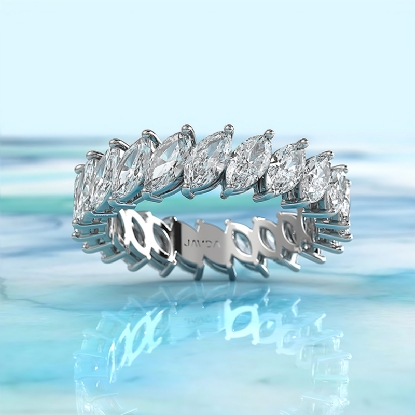 "A timeless symbol of love and commitment" with this stunning marquise cut lab grown diamond women's eternity wedding band, meticulously handcrafted in 14k white gold. This brilliant anniversary ring showcases 3.15 ctw. marquise diamonds in a shared prong setting, IGI certified. Also available in 14k & 18k white gold, yellow gold, rose gold and platinum 950. If you don't find your desired jewelry, please don't hesitate to contact our designer to make your custom jewelry design. (3.15Ct. tw.)