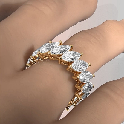 This stunning marquise cut lab grown diamond eternity band is the perfect blend of elegance and timeless beauty handcrafted in 14k Gold Yellow, this women's fashion ring features a , with each diamond set in a shared prong setting to enhance its brilliance certified by IGI. Its sleek design makes it perfect for stacking with your everyday rings, also available in 14k & 18k white gold, yellow gold, rose gold and platinum 950. If you don't find your desired jewelry, please don't hesitate to contact our designer to make your custom jewelry design. (7.5Ct. tw.)