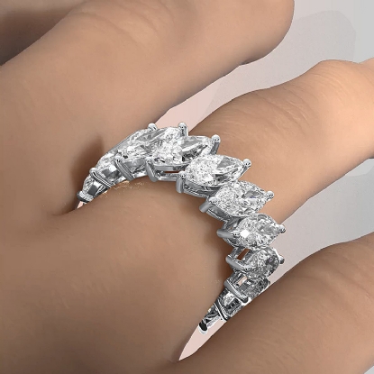 This stunning marquise cut lab grown diamond eternity band is the perfect blend of elegance and timeless beauty handcrafted in 18k Gold White, this women's fashion ring features a , with each diamond set in a shared prong setting to enhance its brilliance certified by IGI. Its sleek design makes it perfect for stacking with your everyday rings, also available in 14k & 18k white gold, yellow gold, rose gold and platinum 950. If you don't find your desired jewelry, please don't hesitate to contact our designer to make your custom jewelry design. (7.5Ct. tw.)