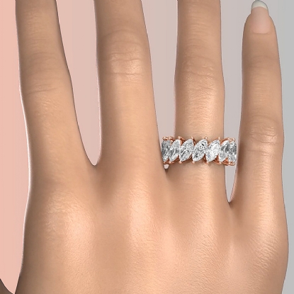 This stunning marquise cut lab grown diamond eternity band is the perfect blend of elegance and timeless beauty handcrafted in 14k Rose Gold, this women's fashion ring features a , with each diamond set in a shared prong setting to enhance its brilliance certified by IGI. Its sleek design makes it perfect for stacking with your everyday rings, also available in 14k & 18k white gold, yellow gold, rose gold and platinum 950. If you don't find your desired jewelry, please don't hesitate to contact our designer to make your custom jewelry design. (7.5Ct. tw.)