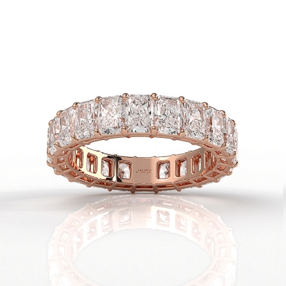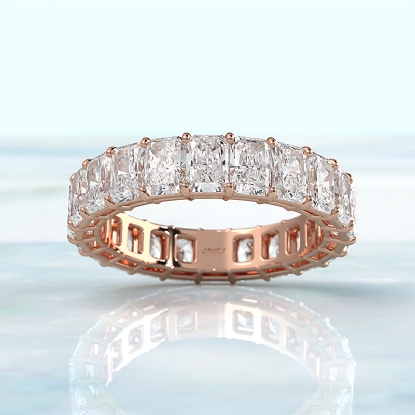 This stunning radiant cut lab grown diamond eternity wedding band is a true symbol of timeless elegance. Crafted in 14k Rose Gold, it features 20 radiant cut diamonds totaling , all meticulously set in a shared prong setting. The diamonds are IGI certified, ensuring superior quality and brilliance. Also available in 14k & 18k white gold, yellow gold, rose gold and platinum 950. If you don't find your desired jewelry, please don't hesitate to contact our designer to make your custom jewelry design. (4.8Ct. tw.)