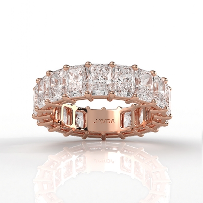 This shared prong women's eternity wedding band is a stunning statement piece, designed to shine on its own or complement an engagement ring perfectly. Featuring carat total weight of radiant shaped lab grown diamonds, it?s crafted with care in 14k Rose Gold. Also available in 14k & 18k white gold, yellow gold, rose gold and platinum 950. If you don't find your desired jewelry, please don't hesitate to contact our designer to make your custom jewelry design. (7.05Ct. tw.)