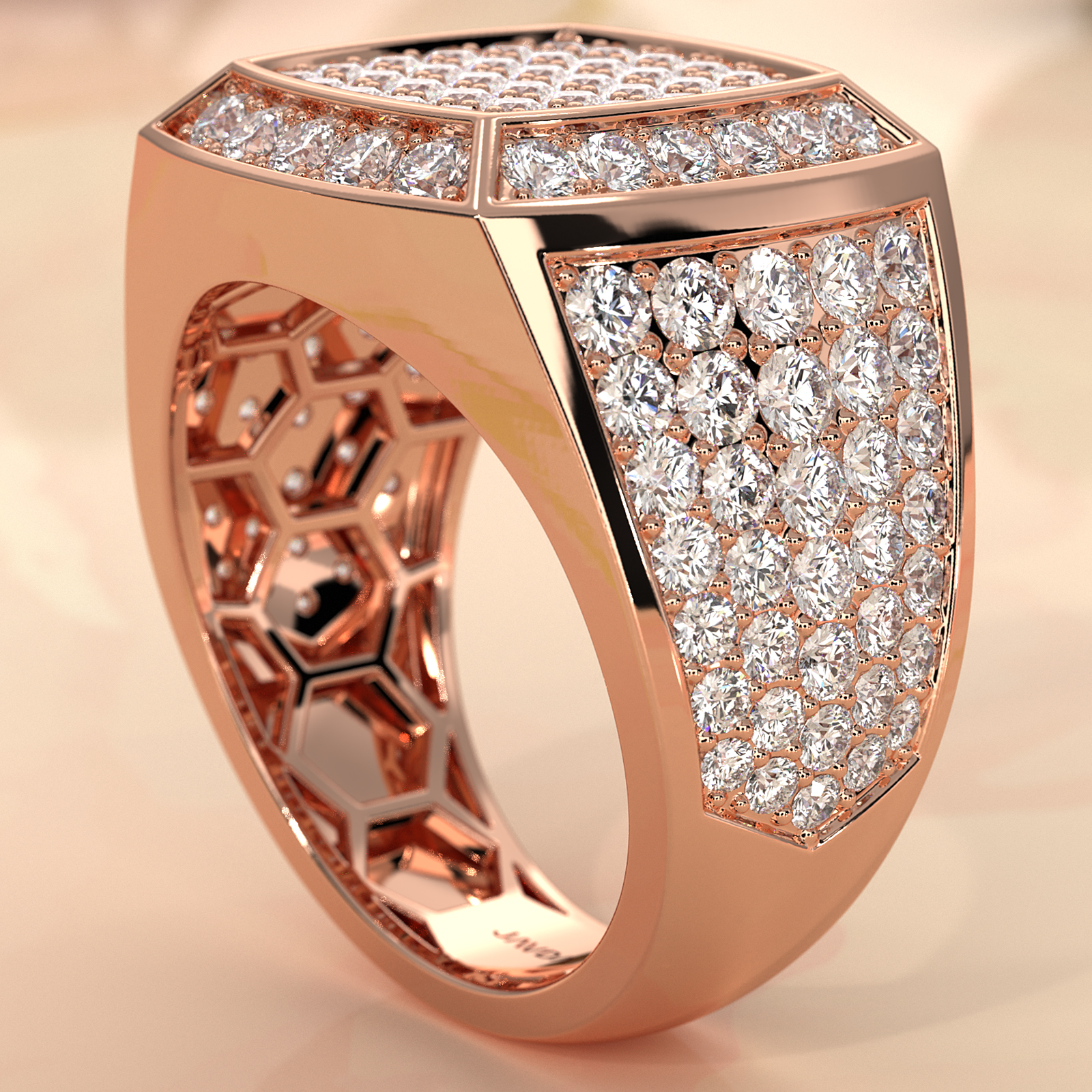 This men's square ring is crafted in luminous 18k Rose Gold and set with total weight of brilliant lab grown diamonds. Designed with clean lines and a powerful profile, it showcases a square setting that adds a modern, confident edge. Ethically sourced and expertly crafted, this ring blends timeless style with sustainable luxury perfect for the man who values both design and conscience. (3.11Ct. tw.)