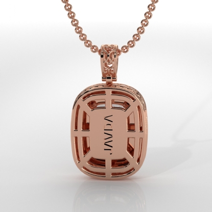 Pave Set Round Diamond Cushion Halo Solitaire Pendant in 18k Rose Gold (0.57Ct. tw.)
