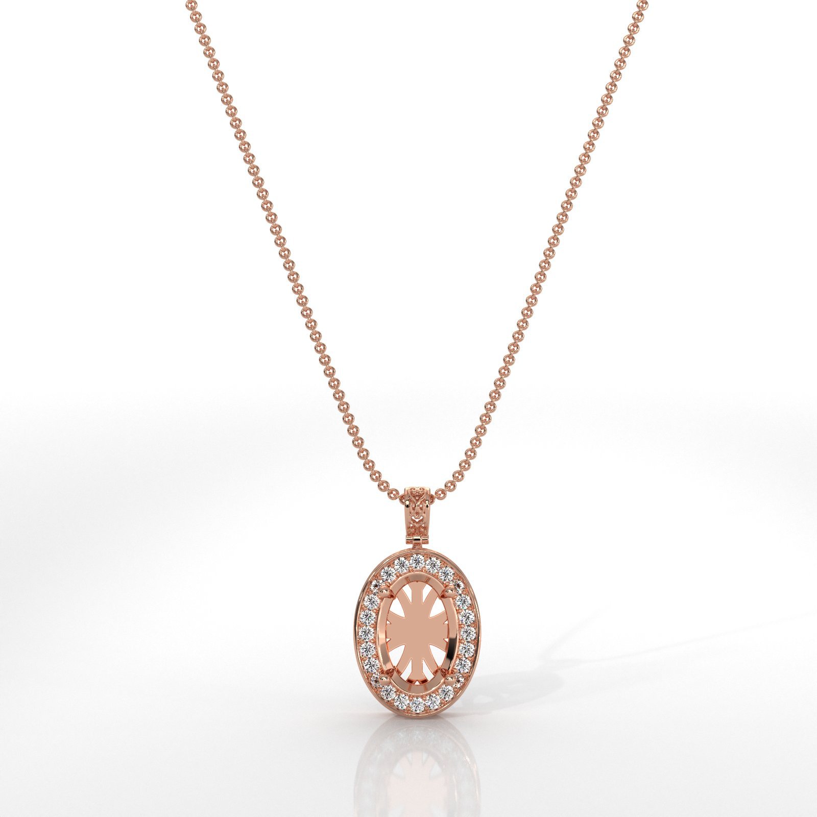 Pave Set Round Diamond Halo Oval Cut Solitaire Pendant in 14k Rose Gold (0.63Ct. tw.)