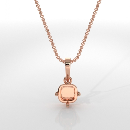 Cushion Cut Semi Mount Solitaire 4Prong Scroll Pendant With Chain 14k Rose Gold