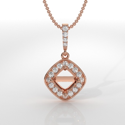 Halo Pave Cushion Cut Semi Mount Diamond Bail Pendant in 18k Rose Gold (0.17Ct. tw.)
