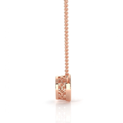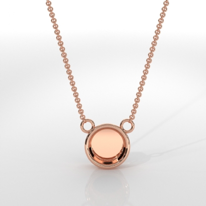 Classic solitaire pendant crafted in 14k Rose Gold with a bezel-set round cut semi mount. Features an elegant gallery design, perfect for showcasing your center stone (not included). Includes a matching rolo link chain for a seamless, stylish finish. Pendant measures approx. 6/16" wide x 5/16" high and weighs 0.50g.