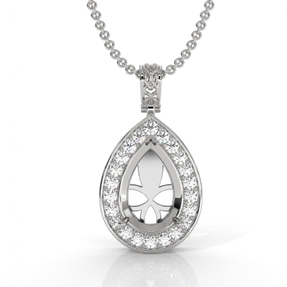 Pave Set Diamond Halo Solitaire Pendant Accent Pear Cut in Platinum (0.56Ct. tw.)