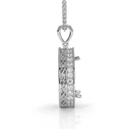 This elegant pendant features a round pre-set pave diamond solitaire with accent, crafted to fit a pear cut diamond center in luxurious Platinum 950. Perfectly balanced between modern sparkle and timeless form. Includes a matching rolo link chain for a polished, ready-to-wear look.