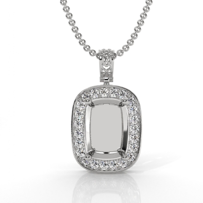 Pave Set Round Diamond Cushion Halo Solitaire Pendant in Platinum (0.57Ct. tw.)