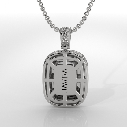 This elegant pendant features a round pre-set pave diamond in a cushion solitaire style. Crafted in Platinum 950, it delivers timeless sparkle with a modern silhouette. Perfect for showcasing refined taste or gifting on special occasions. Comes with a matching rolo link chain for a polished finish.